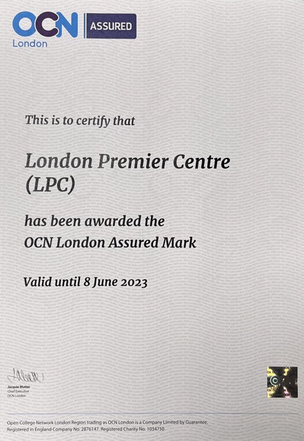 London Premier Centre has obtained the symbol of trust in our learning provision for quality from the UK’s Leading Awarding Organisation, Open College Network London (OCN London Assured)